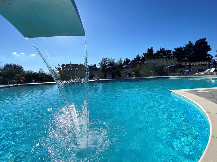 Appartement 4-kamers 75 m2. Woon-/eetkamer met 1 2-pers divanbed en Kabel-TV. 2 2-pers. kamers. 1 kamer met 2 bedden. Kookhoek (Gasfornuis, 4 kookpitten (vlammen)). 2 douche/bidet/WC's. Gas-verwarming. Klein terras, kleine zithoek in de tuin. Ter beschikking: kinderbed tot 2 jaar. Internet (WiFi, gratis). Maximaal 1 huisdier/hond toegestaan. De beschrijving betreft een voorbeeld van dit type woning in dit complex. IT048032B5FCJWV7PS