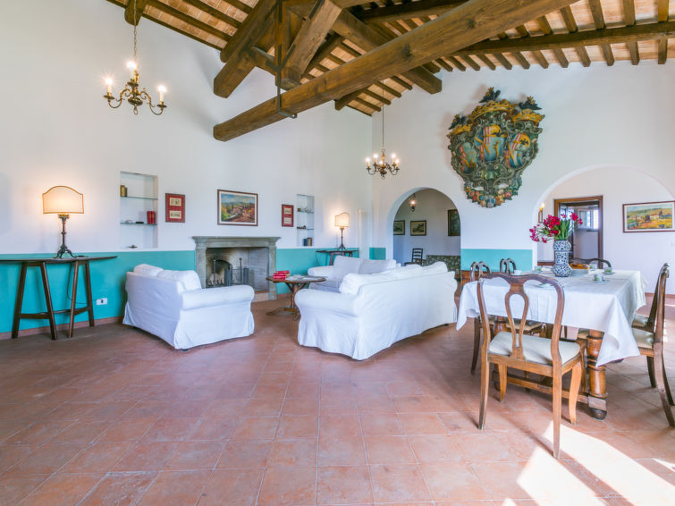 Villa 6-kamers 365 m2 op 2 verdiepingen. Antiek en luxueus ingericht: groot woonkamer met open haard. Uitgang naar de zitplaats in de tuin. Kleine woonkamer met TV. 1 2-pers. kamer 22 m2. 1 kamer 20 m2 met 2 bedden. 2 kamers, elke kamer heeft 1 2-pers bed (160 cm), douche/bidet/WC. Keuken 28 m2 (4-pits kookplaat, oven, afwasmachine, broodrooster, elektrische koffiemachine) met eettafel. Uitgang naar de tuin, pergola. Douche/bidet/WC, aparte WC. Bovenverdieping: 1 2-pers. kamer 28 m2 met open haard en douche/bidet/WC. 1 kamer 28 m2 met 1 bed, 1 2-pers bed en douche/bidet/WC. Uitgang naar het terras. Zithoek in de tuin, tuin. Barbecue. Mooi uitzicht op het landschap. Ter beschikking: wasmachine, strijkijzer, klamboe, haardroger. Parkeerplaats. Niet rokers woning. Maximaal 2 huisdieren/honden toegestaan. Privé ingang. Geen interne verbinding tussen de aparte wooneenheden. IT053014B5TUJ7UD5C