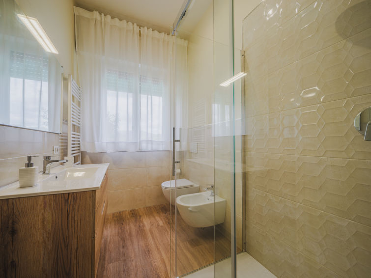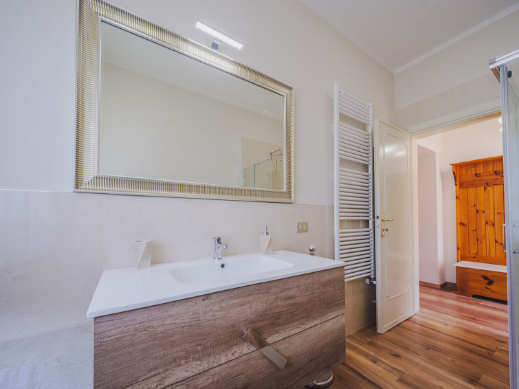 Huis 8-kamers 200 m2 op 2 verdiepingen. Mooi en gezellig ingericht: groot, open woon-/eetkamer met eettafel, TV, Flatscreen TV en air-conditioning. Uitgang naar het terras. 2 2-pers. kamers. 1 kamer met 2 bedden. Open keuken (oven, afwasmachine, 5 kookpitten (vlammen), broodrooster, waterkoker, elektrische koffiemachine) met air-conditioning. 2 douche/bidet/WC's. Gas-verwarming. Verwarming alleen beschikbaar van 01.11. tot 15.04. Bovenverdieping: (buitentrap) woonkamer met air-conditioning. Uitgang naar het balkon. 1 2-pers. kamer met air-conditioning. 1 2-pers. kamer met 1 bed en air-conditioning. 1 kamer met 2 bedden. Bad/bidet/WC, douche/bidet/WC. Gas-verwarming (extra). Tuin 500 m2. Barbecue, ligstoelen. Ter beschikking: strijkijzer, klamboe, kinderstoel, kinderbed tot 2 jaar, haardroger. Parkeerplaats (omheind, 4 Auto's). Rookvrij huis. Rookmelders, brandblusser. Geen interne verbinding tussen de aparte wooneenheden. Geen interne verbinding tussen de etages. IT046005C29GABB7PT,IT046005C2CMFSCV4U