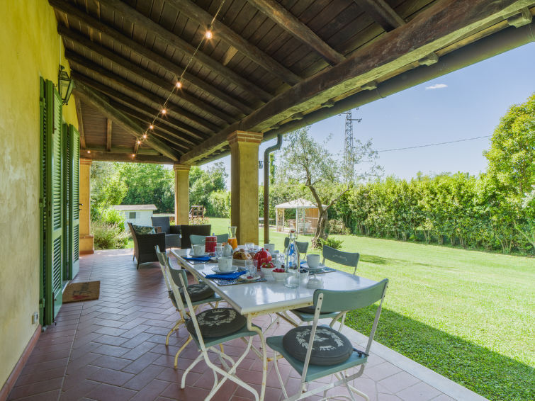 Capezzano 4 km van Camaiore: Moderne, mooi eengezinswoning "Il Casale", omgeven door weiden. 500 m van het centrum van Capezzano, 5 km van het centrum van Lido di Camaiore, 20 km van het centrum van Lucca, centrale, zonnige ligging, 5 km van zee, 5 km van het strand, aan een doodlopende weg, aan een weg, te midden van groen. Voor alleengebruik: tuin 1.500 m2 (omheind) met gazon, openluchtzwembad (verhoogd) (6 x 3 m, 100 cm diepte, seizoensgebonden beschikbaarheid: 01.Mei. - 04.Okt.). Buitendouche, patio, tuinmeubelen, barbecue, parkeerplaats (voor 5 auto's) op het terrein. Levensmiddelenwinkel 500 m, supermarkt 1 km, restaurant 1 km, bar 1 km, bushalte 500 m, treinstation "Viareggio" 6 km, zandstrand 5 km. Attracties in de buurt: Camaiore 5 km, Forte dei Marmi 11 km, Pietrasanta 5 km, Marina di Pietrasanta 9 km, Pisa 46 km, Carrara cave Fantiscritti 44 km. Bekende meren kunnen gemakkelijk worden bereikt: Torre del Lago 22 km, Lago di Massaciuccoli 16 km. Wandelgebied Antro del Corchia Levigliani 32 km. Auto noodzakelijk. De eigenaar accepteert geen jeugdgroepen.