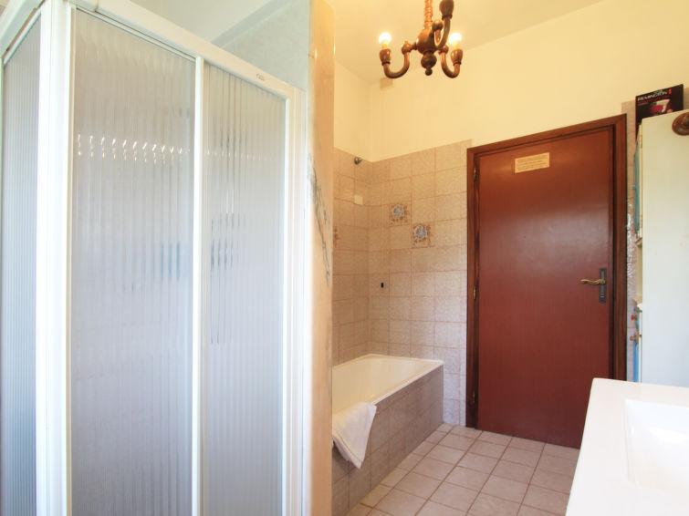 "Marcella", villa 6-kamers 165 m2 op 2 verdiepingen. Comfortabel en gezellig ingericht: woon-/eetkamer met Digitale TV. 1 kamer met 2 bedden. 1 kamer met 1 bed. Keuken (4-pits kookplaat, oven, afwasmachine, magnetron, diepvriezer). Douche/bidet/WC. Bovenverdieping: 2 2-pers. kamers, elke kamer heeft air-conditioning. Uitgang naar het balkon. 1 kamer met 2 bedden en air-conditioning. Uitgang naar het balkon. Douche/bidet/WC, bad/douche/WC. Verwarming (extra). Balkon, zithoek in de tuin. Terrasmeubelen. Ter beschikking: wasmachine, strijkijzer, haardroger. Internet (Internet (WiFi), gratis). IT046013B436ABLMEO