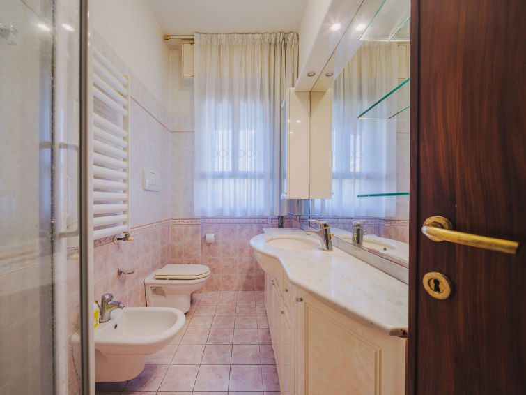 "Oasi", appartement 4-kamers 110 m2, op de begane grond. Ruim en licht, zeer doelmatig en comfortabel ingericht: woon-/eetkamer met TV (Flatscreen TV). Uitgang naar de tuin. 2 2-pers. kamers. Uitgang naar de tuin. 1 kamer met 1 bed en 1 uitschuifbaar bed. Groot woonkeuken (mini-oven, afwasmachine, Gasfornuis, 4 kookpitten (vlammen), broodrooster, waterkoker, elektrische koffiemachine) met eettafel, air-conditioning. Uitgang naar de tuin, naar het terras, naar de veranda. 2 douche/bidet/WC's. Gas-verwarming. Verwarming alleen beschikbaar van 01.11. tot 15.04. Groot tuin. Terrasmeubelen, zitgelegenheid. Uitzicht op de tuin. Ter beschikking: wasmachine, strijkijzer, haardroger. Internet (Internet (WiFi), gratis). Parkeerplaats (omheind, 2 Auto's). Geschikt voor families. IT046033C2Q3266YL8