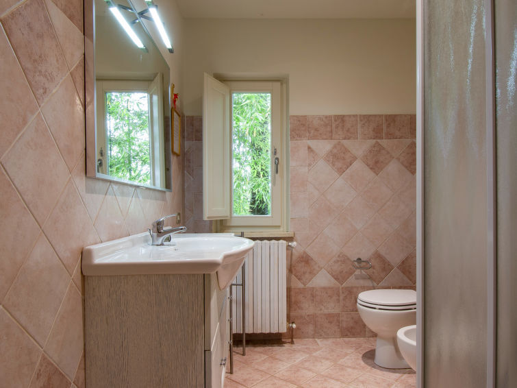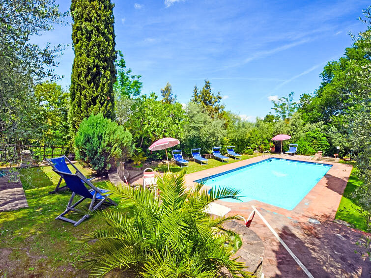 Podere Rasenna is een gerestaureerde boerderij die gelegen is op helling met panoramisch uitzicht. Het ligt tussen het burchtdorp San Miniato (12 km) en de kultuurstad Pisa. De stranden van de Versilia-kust zijn niet ver weg (35 km) en dat maakt het tot een ideaal uitgangspunt om een kultuur- en strandvakantie met elkaar te verbinden. Bij de boerderij hoort eveneens een grondstuk van 12 ha met olijfgaarden en bos alsook een grote tuin met zitjes. U bereikt het huis via een 800 m. lange weg. Temidden van het heerlijk groene grondstuk ligt een zwembad met zonneterras en badhokje/WC. Tevens heeft u de beschikking over een grote veranda met meubels waar u heerlijk buiten kunt eten. Inrichting in toscaanse landhuisstijl met enkele antieke meubelstukken. Balkenplafonds, natuurstenen wanden en originele bogen kenmerken de woning. Mooi landhuis "Podere Rasenna". 3 km van het centrum van Marti, 6 km van het centrum van Palaia, geïsoleerde, rustige, verhoogde ligging, te midden van groen. Voor alleengebruik: groot, mooie tuin met gazon en planten, openluchtzwembad (5 x 12 m, 120 - 150 cm diepte, seizoensgebonden beschikbaarheid: 19.Apr. - 04.Okt.). Prieel, terras, tuinmeubelen, barbecue. In het huis: spa centrum, wasmachine, Verwarming ter plaatse te betalen, verwarming alleen beschikbaar van 01.Nov. - 15.Apr. (extra). Toegangsweg (800 m onverharde weg). Parkeerplaats bij het huis op het terrein. Levensmiddelenwinkel 3 km, bar 3 km, bushalte "Marti" 3 km, treinstation "Montopoli" 6 km, zandstrand 35 km. Golfterrein 12 km, tennis 12 km, manege 14 km. Attracties in de buurt: Pisa 25 km, Firenze 50 km.