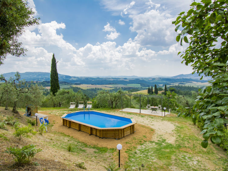 Groot, comfortabel huis "Miranda", van 2 verdiepingen, eenzijdig aangebouwd, omgeven door bomen en velden. Aan de rand van de plaats, 150 m van het centrum van Villamagna, rustige, zonnige ligging, 45 km van zee. Voor alleengebruik: wilde tuin, openluchtzwembad (verhoogd) (7 x 4 m, seizoensgebonden beschikbaarheid: 01.Mei. - 15.Okt.). Buitendouche, prieel, onderhoud zwembad door de eigenaar/tuinman. Parkeerplaats (voor 2 auto's) op het terrein. Winkel 150 m, supermarkt 12 km, restaurant 4 km, bar 250 m, bushalte 200 m, zandstrand "Marina di Cecina" 45 km, thermaalbad "Casciana Terme" 27 km. Manege 2 km. Attracties in de buurt: Volterra 14 km, San Gimignano 25 km, Pisa 60 km. Groepen jongeren uitsluitend op aanvraag. Eigenaar woont in apart huisgedeelte. De eigenaar heeft een hond.