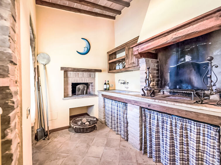 "Vineyard View", villa 6-kamers 220 m2, op de begane grond. Zeer comfortabel en mooi ingericht: groot hal met Sat-TV (Flatscreen TV). Uitgang naar de tuin. 1 2-pers. kamer met douche/bidet/WC en air-conditioning. 1 2-pers. kamer met air-conditioning. 1 2-pers. kamer met air-conditioning. 1 kamer met 2 bedden en air-conditioning. Open galerij met 1 2-pers divanbed. Groot woonkeuken (6-pits kookplaat, oven, afwasmachine, broodrooster, waterkoker, magnetron, diepvriezer, elektrische koffiemachine, pads voor de koffiemachine (Nescafè 1 box), pizzaoven) met eettafel. Bad/bidet/WC, douche/bidet/WC. Natuurstenen vloeren. Comfortabele inrichting in landelijke stijl. Klein terras, zithoek in de tuin. Terrasmeubelen, barbecue. Zeer mooi panoramazicht op het landschap. Ter beschikking: wasmachine, droger, strijkijzer, klamboe, kinderstoel, kinderbed. Internet (WiFi, gratis). Maximaal 2 huisdieren/honden toegestaan. IT052028B4OMZ8MZVN
