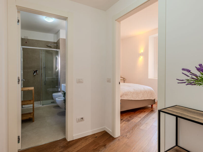 "Giada", appartement 2-kamers 60 m2, op verhoogde begane grond. Volledig gerenoveerd in 2024, comfortabel en modern ingericht: open woon-/slaapkamer met 1 2-pers divanbed, eettafel en TV (Flatscreen TV), air-conditioning. 1 2-pers. kamer met air-conditioning. Open keuken (oven, afwasmachine, 4 inductiekookplaten, broodrooster, waterkoker, magnetron, diepvriezer, elektrische koffiemachine, pads voor de koffiemachine (Nespresso)). Douche/bidet/WC. Air-conditioning, vloerverwarming. Verwarming alleen beschikbaar van 15.10. tot 30.04. Parketvloeren, natuurstenen vloeren. Ligstoelen (2). Ter beschikking: wasmachine, droger, kinderstoel, kinderbed tot 2 jaar, haardroger. Internet (WiFi, gratis). Garage. Niet rokers woning. Privé ingang, rookmelders, brandblusser. IT013075C2MOJQ2VGC