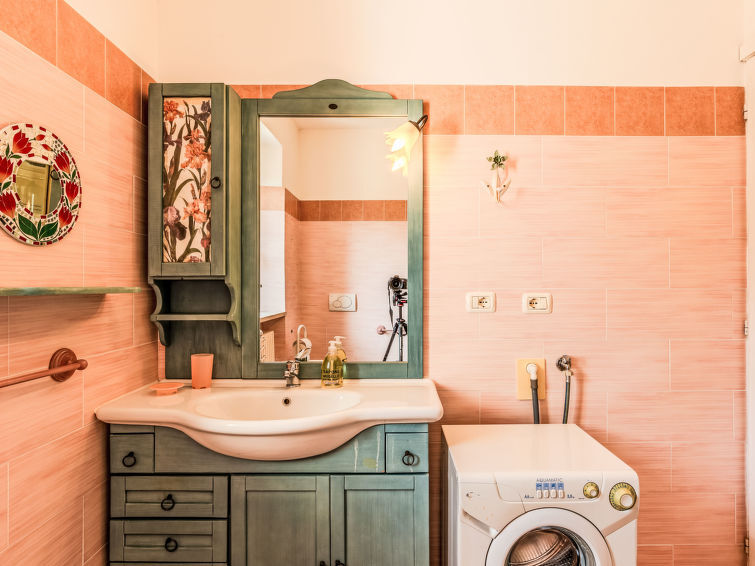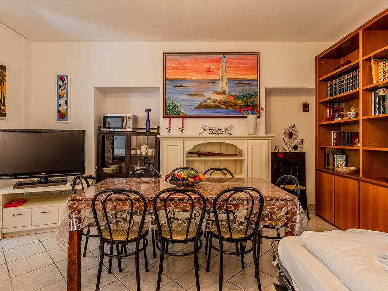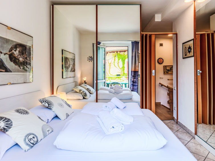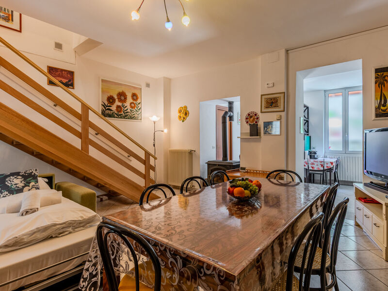 Huis in een rij 3-kamers 90 m2 op 2 verdiepingen. Doelmatig en mooi ingericht: open woon-/slaapkamer met 1 2-pers divanbed, eettafel en TV (Flatscreen TV), air-conditioning. Uitgang naar het terras. Open keuken (oven, Gasfornuis, 4 kookpitten (vlammen), broodrooster, waterkoker, magnetron, diepvriezer, elektrische koffiemachine) met bar. Douche/bidet/WC. Bovenverdieping: 1 2-pers. kamer met air-conditioning. Uitgang naar het balkon. Open slaapnis met gordijn met 1 2-pers divanbed (150 cm, lengte 190 cm). Douche/bidet/WC. Gas-verwarming, air-conditioning, heteluchtverwarming. Verwarming alleen beschikbaar van 15.10. tot 15.04. Natuurstenen vloeren. Groot balkon, klein terras. Terrasmeubelen, balkonmeubilair, ligstoelen (2). Uitzicht op de bergen en de plaats. Ter beschikking: wasmachine, kinderstoel, kinderbed tot 2 jaar, haardroger. Internet (Internet (WiFi), gratis). Rookvrij huis. IT013075C2J7EIL3E6