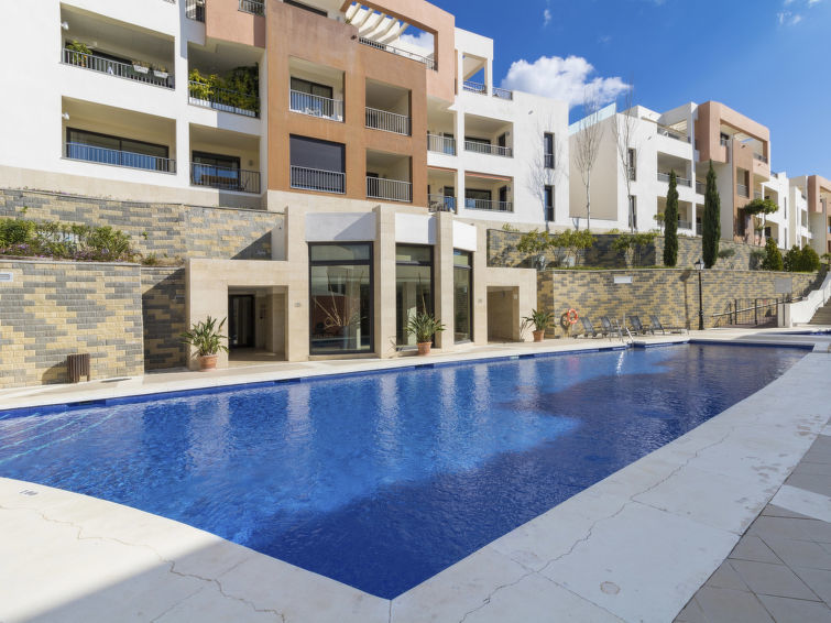 Los Monteros: Moderne flatgebouw "Samara Resort", bouwjaar 2008. 7 km van het centrum van Marbella, verhoogde ligging, 5 km van zee, 5 km van het strand, op het zuiden. Voor medegebruik: 3 zwembaden, overdekt zwembad hoekig verwarmd (seizoensgebonden beschikbaarheid: 01.Jan. - 31.Dec.). Douche/WC bij het zwembad, kinderzwembad, hot tub. In het complex: internetaansluiting, sauna, fitnessruimte, lift. Parkeerplaats. Supermarkt 4 km, restaurant 4 km, bushalte "Hospital Costa del Sol" 4.3 km, zandstrand "Bahía Marbella" 5 km. Golfterrein (18 holes) 4 km. Auto noodzakelijk. Het vakantiecomplex wordt 24 uur per dag bewaakt.
